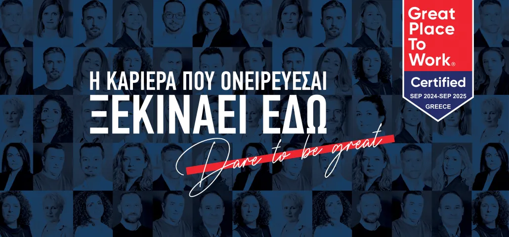 Η πιστοποίηση Great Place to Work® αποτελεί για εμάς κινητήρια δύναμη για να συνεχίσουμε να βελτιώνουμε το εργασιακό μας περιβάλλον και να διατηρούμε την ηγετική μας θέση στον κλάδο.